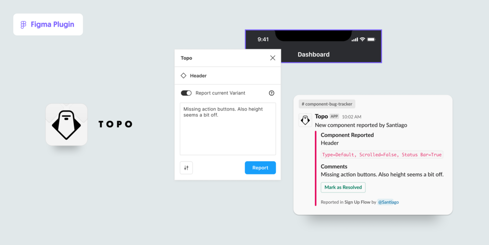 Topo is a Figma Plugin that will allow you report and comment on specific components and post it to any Slack channel or endpoint you want.